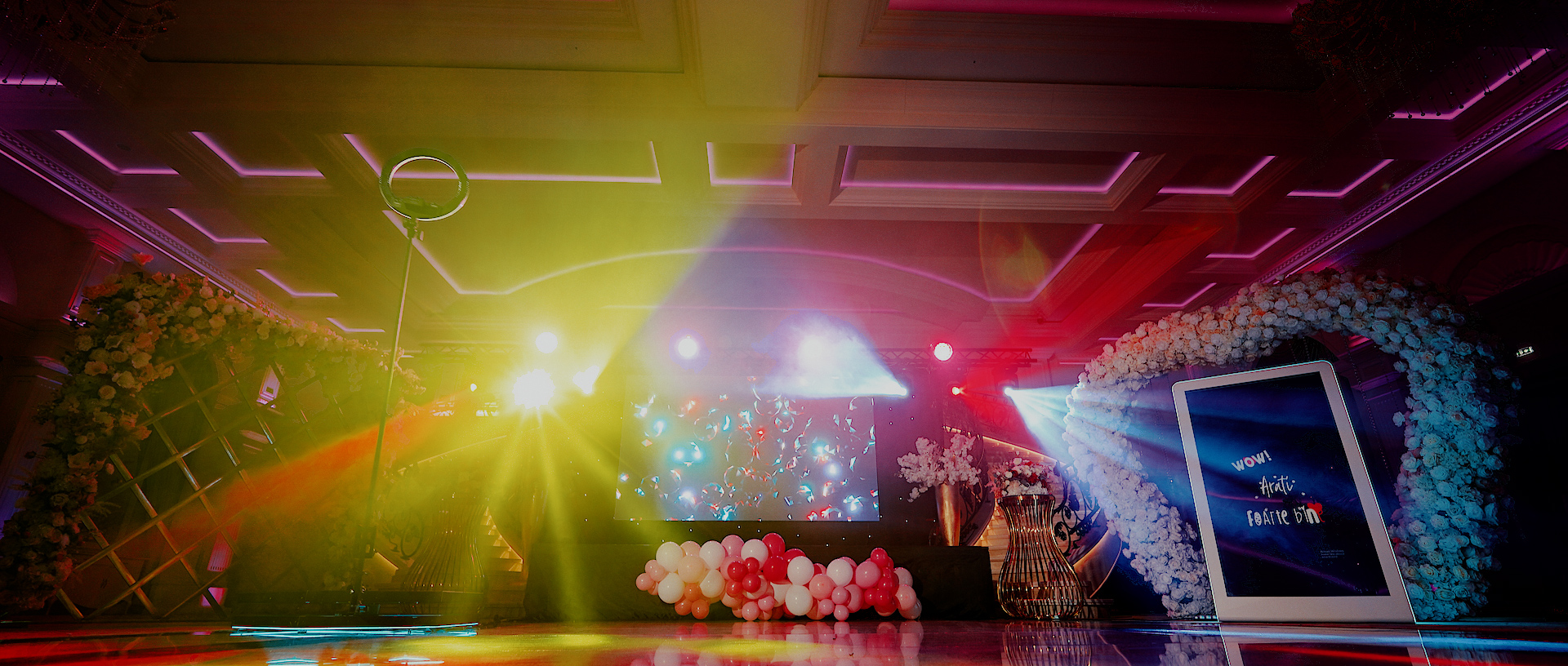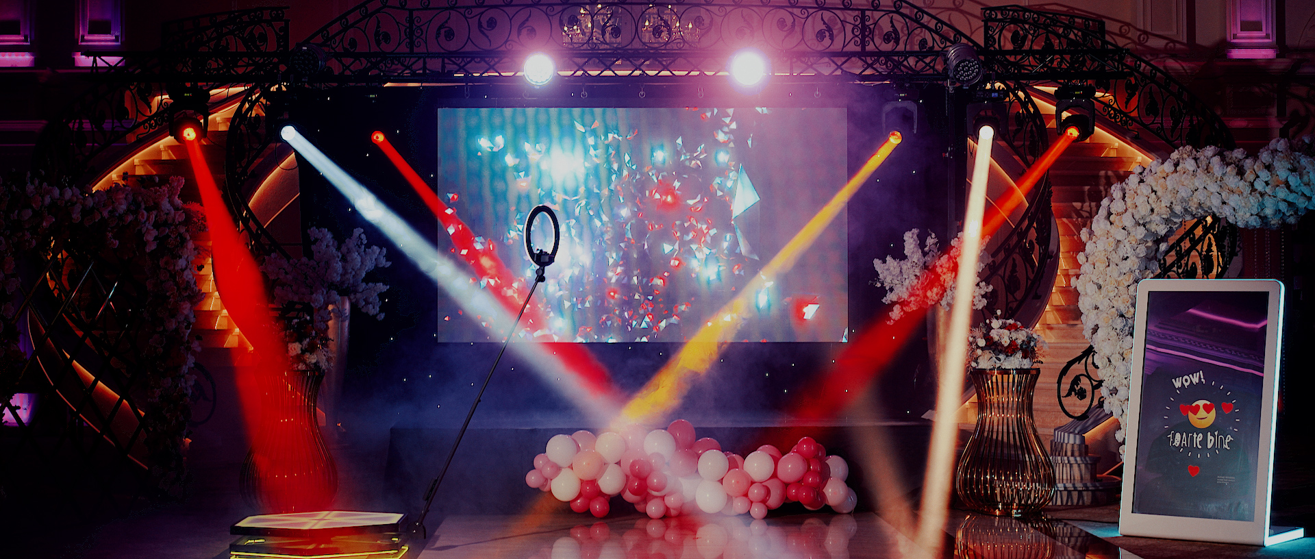 Creează momente magice și surprize memorabile la evenimentul tău! Alege dintre o varietate de echipamente: ecrane LED, lumini, sonorizare, scene modulare, oglinzi magice, platforme selfie 360 și efecte speciale, care vor da viață viziunii tale și vor impresiona invitații.